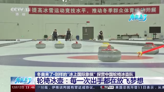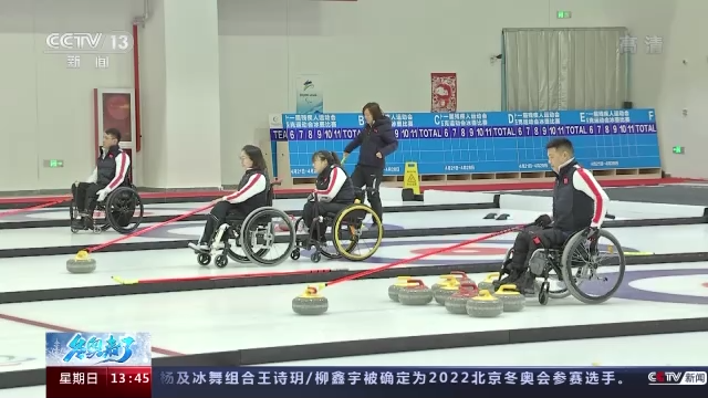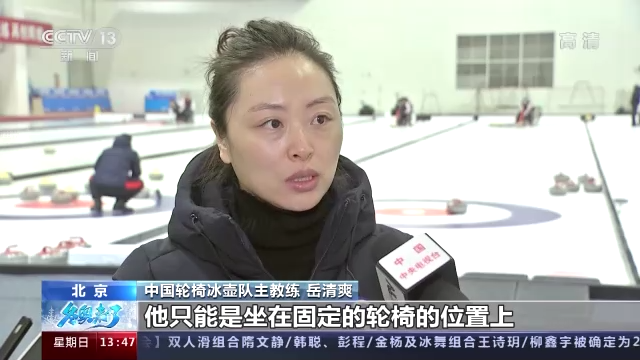 中国轮椅冰壶队主教练 岳清爽:对于轮椅运动员,他只能是坐在固定的轮椅的位置上,然后去靠着不能超过两米四五的杆,去投到对面的大本营,所以说在击打上,可能对于他们的点线就要求得更加精准。那么在进营和占位的判断上,他没有任何辅助,完全是靠自己手臂和杆的结合,然后去推出这个力量。