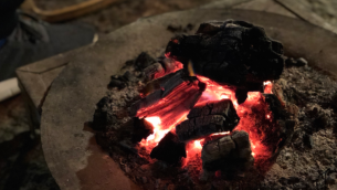 去黄土坑刨回一袋黄黏土,用揉碎的马粪与黄黏土掺合在一起和成胶泥,再用一个木质的盆模子做盆坯,依葫芦画瓢手工制作成泥火盆的泥坯,再把烧饭的铁锅从灶台上取下来,把制好的泥火盆泥坯放入灶膛内,再把铁锅倒扣在灶台口上,往灶膛里填入些柴草烧制一天一夜后,美观结实耐用的泥火盆就新鲜出炉了。