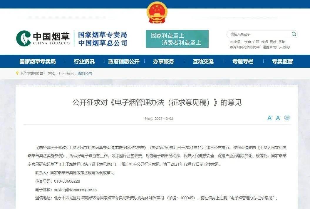 此前,国家烟草专卖局曾就《电子烟管理办法(征求意见稿)》公开征求意见,其中提出国务院烟草专卖行政主管部门建立全国统一的电子烟交易管理平台。禁止向未成年人出售电子烟产品。电子烟经营者应当在显著位置设置不向未成年人销售电子烟的标志;对难以判明是不是未成年人的,应当要求其出示身份证件。