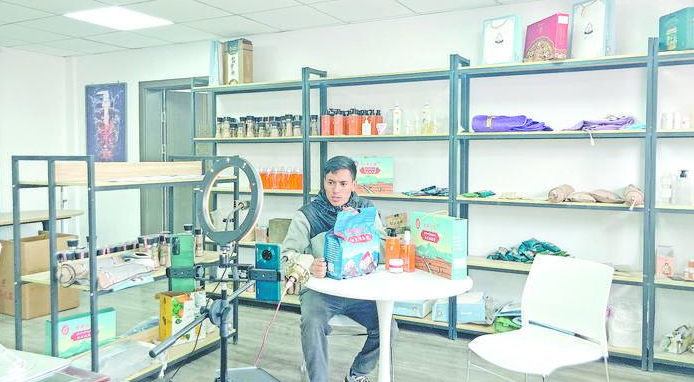 直播推介红盐产品。源点新闻记者张继婷摄
