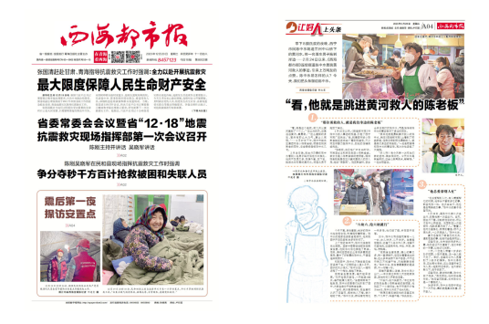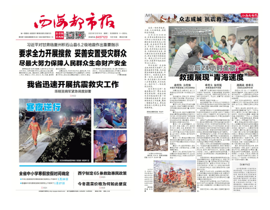 高原寒夜,救援就是使命,西海都市报社迅速行动,第一时间组建全媒体报道团队。12月19日1时40分,直播团队兵分两路赶赴民和回族土族自治县和循化撒拉族自治县,全程直播救援情况,见证各路救援力量与时间赛跑、为生命接力,顶着余震打开生命通道,彰显高原儿女的责任与担当。《西海都市报》是青海最早抵达现场采访、唯一开展现场直播的媒体,也是全国媒体中唯一进入砂涌现场报道的媒体。