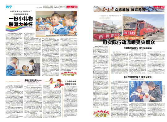 12月18日,积石山6.2级地震发生,青海海东市多个县受灾严重,西海公益联系爱心企业、爱心组织发起暖冬行动,为震区受灾群众捐赠近200万元物资,共同参与抗震救灾。
