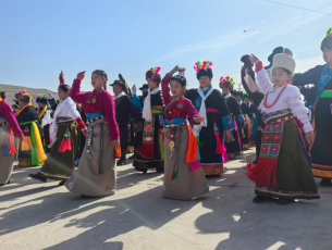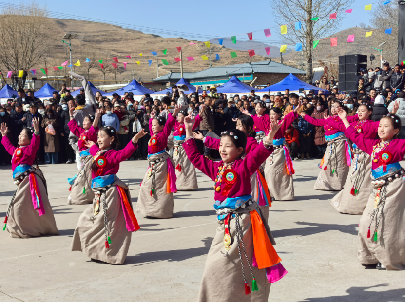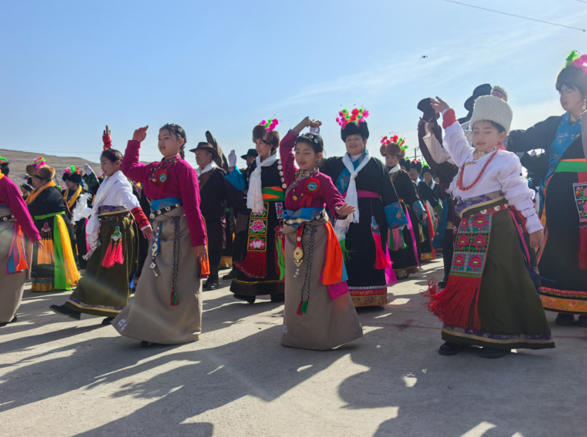 拉科德哇坐落于湟中区拦隆口镇,是当地藏族传统民族文化的重要传承地,尤其以宗喀传统服饰展演而闻名。活动现场,来自拦隆口镇西拉科片区7个村及民间艺术团队的展演队伍,身着各具地域风格的宗喀传统服饰依次登场展示。